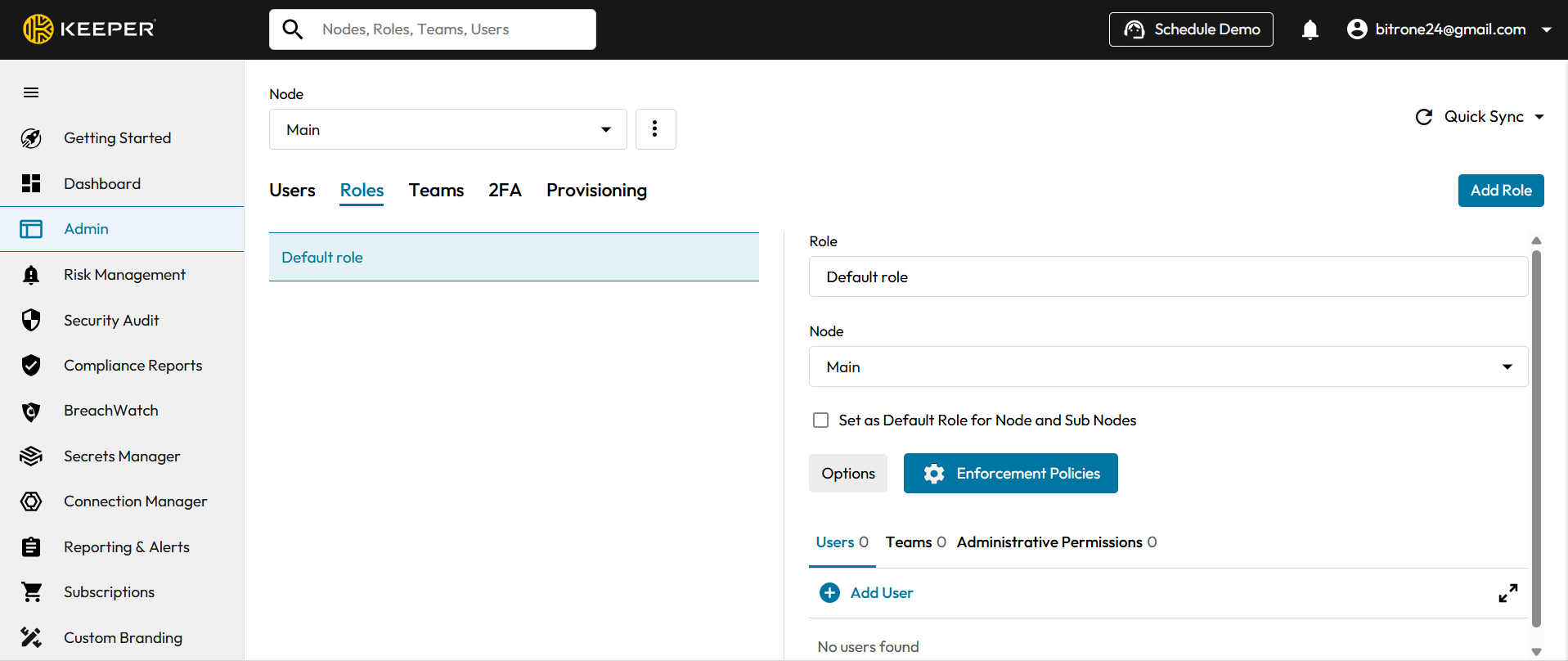 When using Keeper Security for individual accounts, two-factor authentication (2FA) with security key support is enabled by default. For business use, let's enable 2FA for corporate users by configuring the policy in the Admin Console:1) Log in to the Admin Console.
