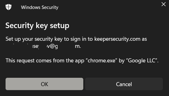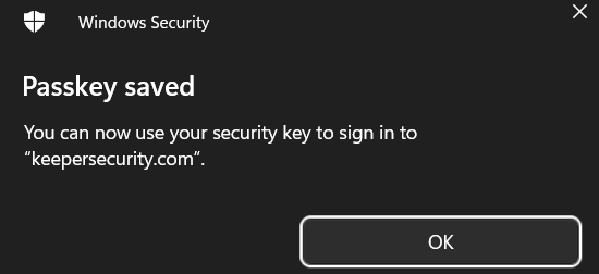 The security key is now ready to use with your Keeper Web Vault as a multi-factor authentication (MFA) method. After entering your email address, you will be prompted to authenticate using the security key.
