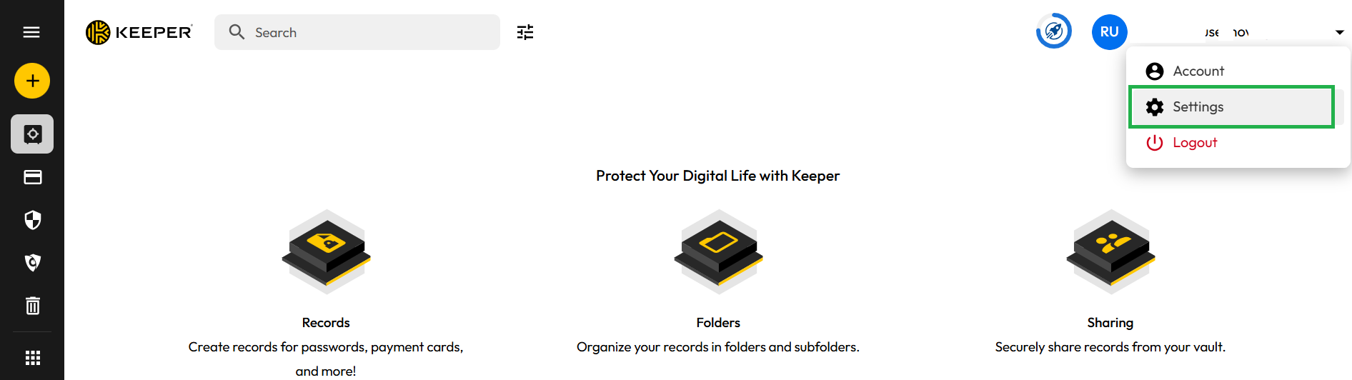 1) Log in to the Web Vault.2) Go to 'Account Settings'.