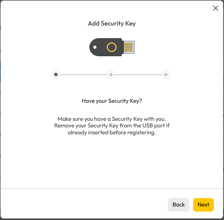 5) The security key enrollment window will appear. Click 'Next' to continue.