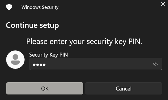8) If you have set up a PIN code on your security key, you will be prompted to enter it. Otherwise, you will be asked to create a new PIN.