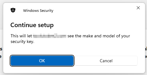 • Chrome/Edge (Chromium-based): You’ll be asked to choose between Passkeys or Security Keys. Select “Use a security key.”